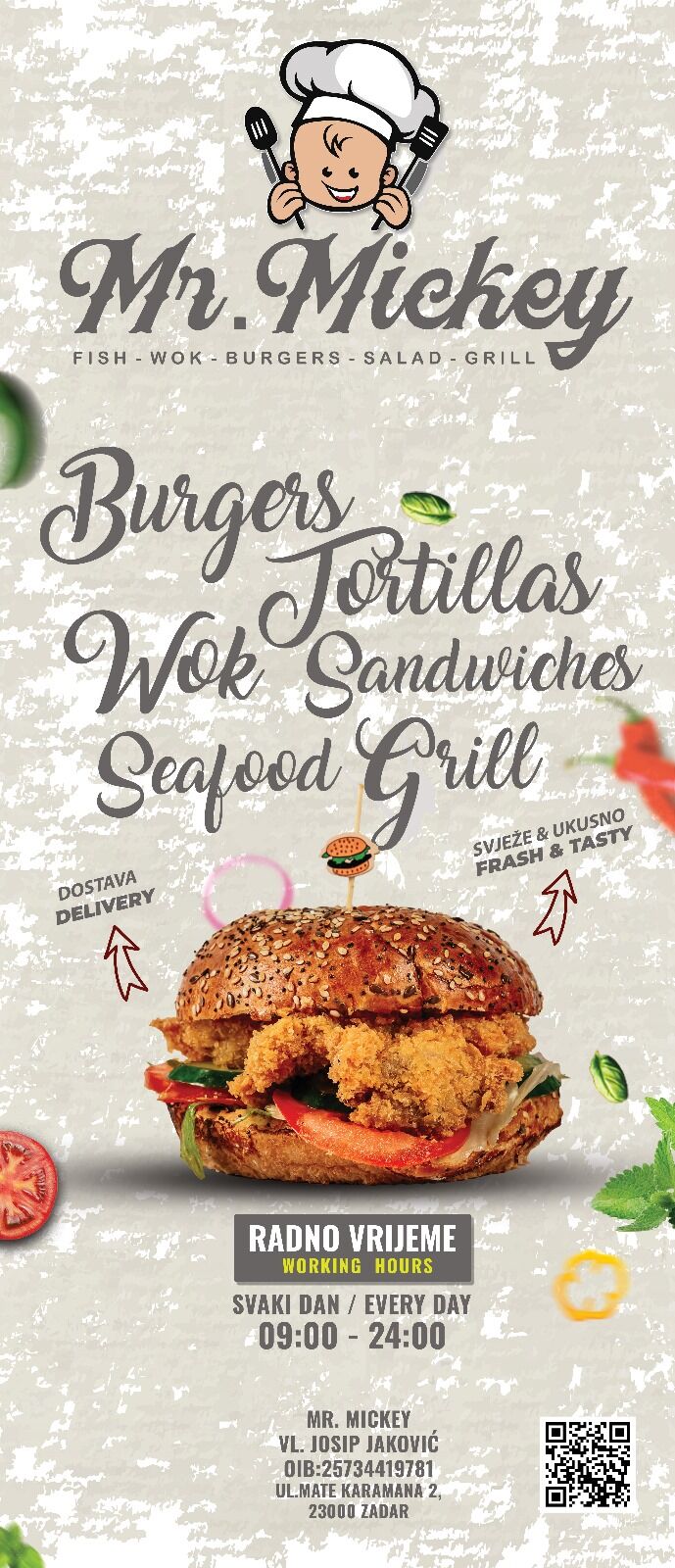 Mr.Mickey nalazi se u staroj gradskoj jezgri. Nudi raznoliku hranu pripremljenih od svježih i kvalitetnih namirnica u kojoj ce Vaši nepci uživati. Iz naše kuhinje izlaze jela koja oduševljavaju i zadovoljavaju sve ukuse, od tradicionalnih klasika do kreativnih inovacija.